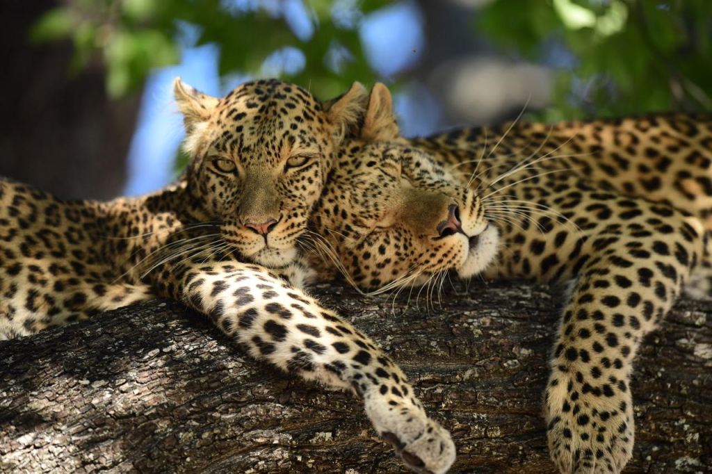 I have included one of my personal favourite photographs (And experiences) from the season. This female leopard, on the left, had just killed an impala, and instead of feeding, she hid the prey, then immediately went off in search of her two year old son who she had not seen in days. As soon as she was in the vicinity where she last saw him she began to call. At first her calls were soft, so as to not attract unwanted attention, the intervals long. She stopped, listened for an answer and then continued to weave in and out of the thick terrain. The tension was palpable, she had to find him, instinct drove her. As time slipped away her calls became more desperate, more frequent, louder and then she froze! Her ears picked up, her face changed, we knew she had heard a response even though we didn’t hear a thing. She sat down and then out of the thickets a young beautiful male leopard bounded out to greet his mom. Affectionately rubbing his head against hers, jumping all over her, rolling on the ground and then repeating the sequence over and over again. She then expertly climbed a tree and her son soon followed, lying next to her he licked her face, excitedly anticipating her next move. It wasn’t long before she led him back to the unfortunate impala who was to provide life to the next generation of big cats.