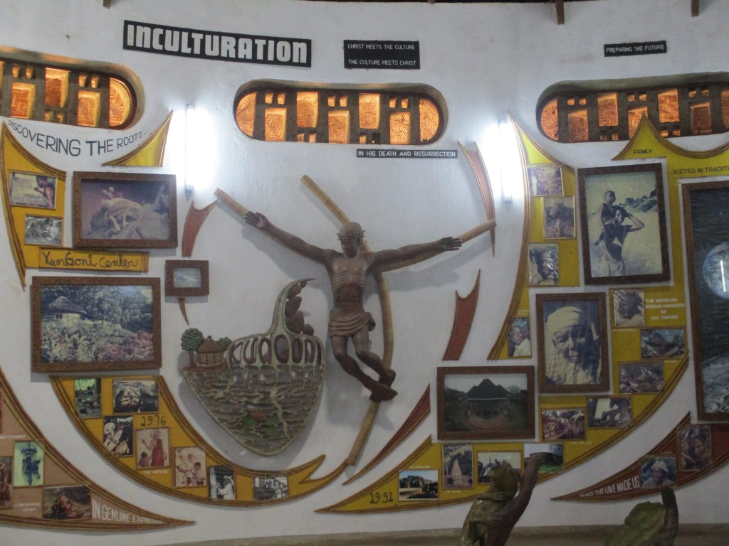 The Catholic church building was quite large and well kept. They had dedicated a whole room with a great many pictures about Malawi history. We toured the room with a man who explained all about the numerous pictures but unfortunately with my bad hearing I missed a lot of it. I was impressed by the stylized depiction of the Crucifixion of Jesus which had definite African influence. In their gift shop was a nativity which was beautifully done and positively African in design. I desperately wanted to bring it home but I knew it would not survive the trip.